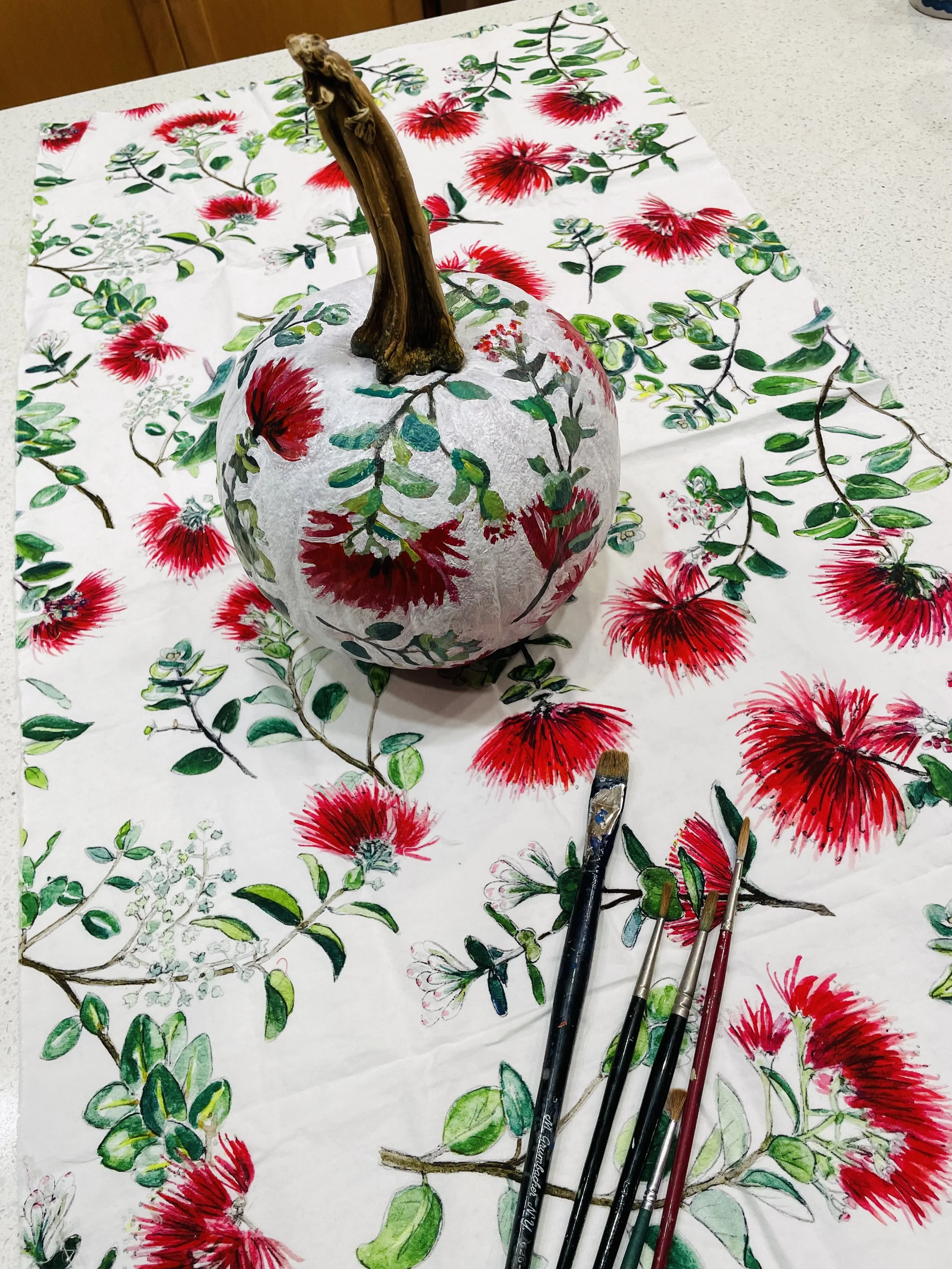 ‘Ōhi’a Lehua Watercolor Textile Pumpkin