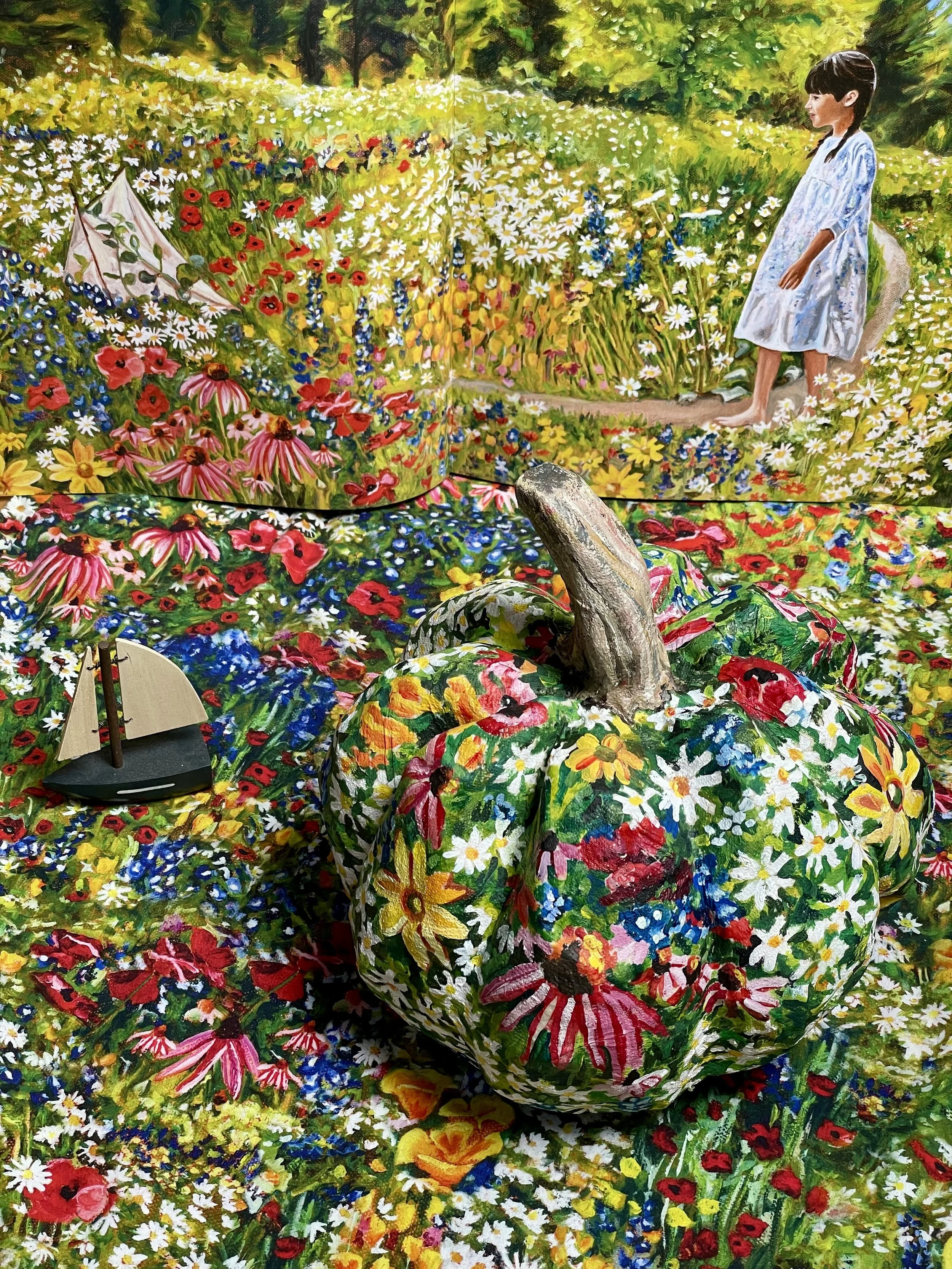8) I waited a week and then painted it to match my Field of Flowers Textile based on an oil painting from my book, The Girl and the Boat!