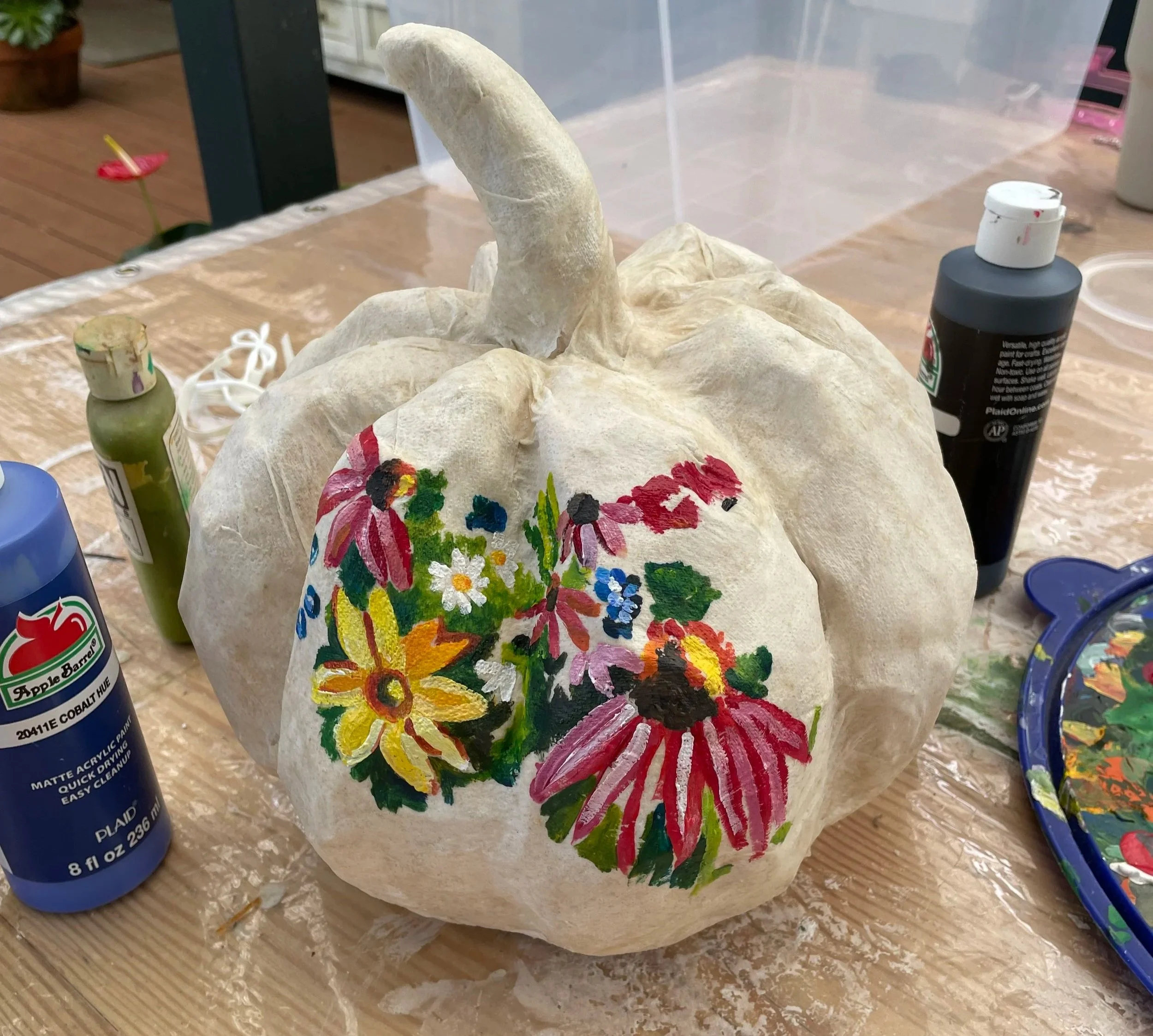 How I made a paper mache pumpkin and painted it to match my Field of Flowers Textile!