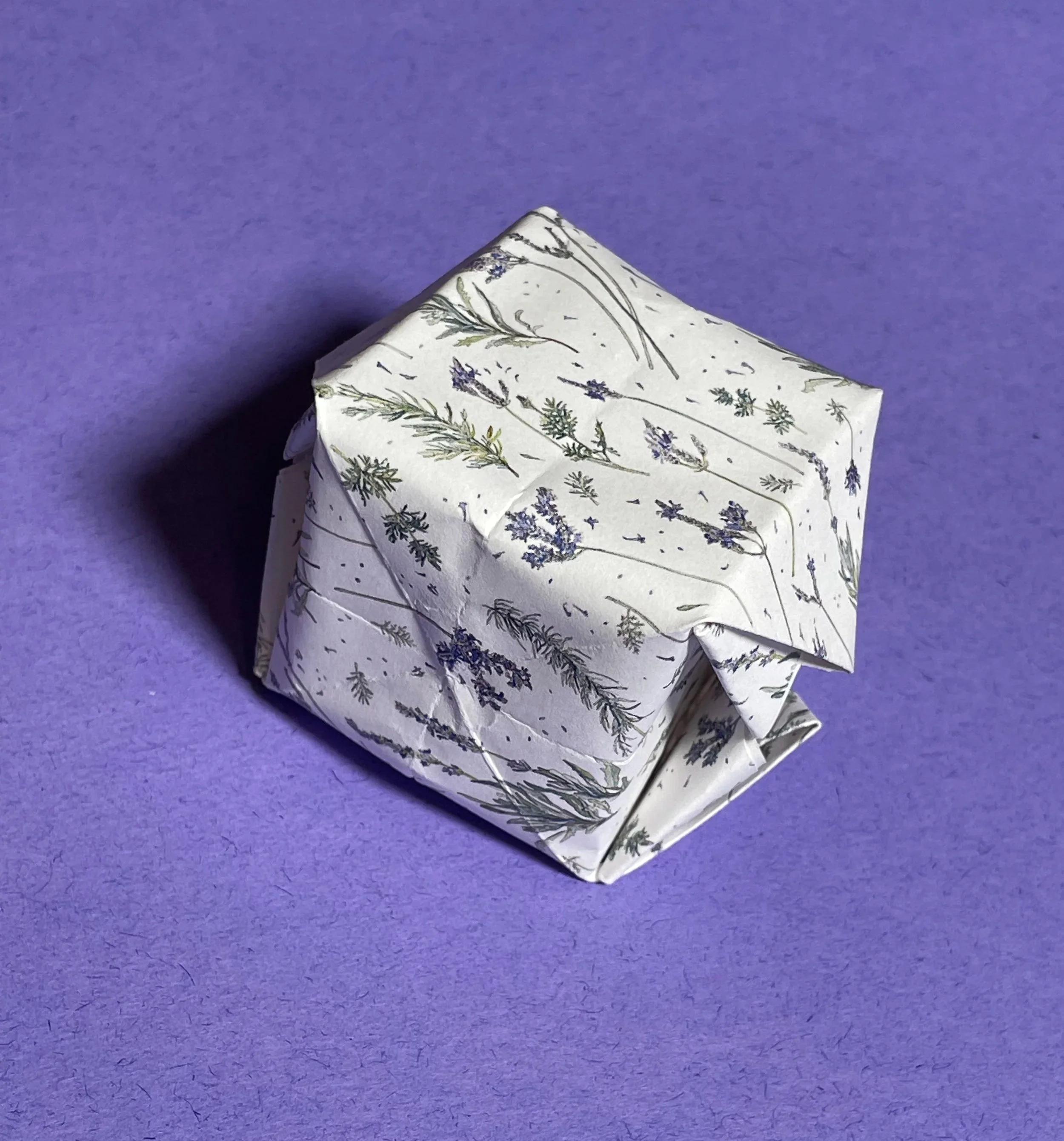 Find the hole at one end of the origami. Blow into it like a balloon while gently separating the shape to inflate your origami ball!